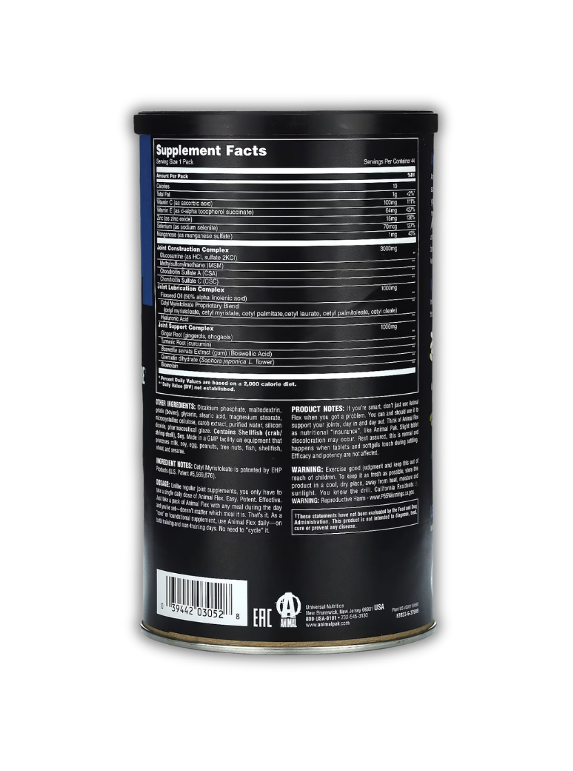 No dejes que el entrenamiento extremo deteriore tus articulaciones. Animal Flex reconstruye, lubrica y fortalece tus articulaciones con Glucosamina, Condroitina, MSM, Ácido Hialurónico y Aceite de Linaza, proporcionando los bloques esenciales para mantener tu cuerpo fuerte y flexible.
