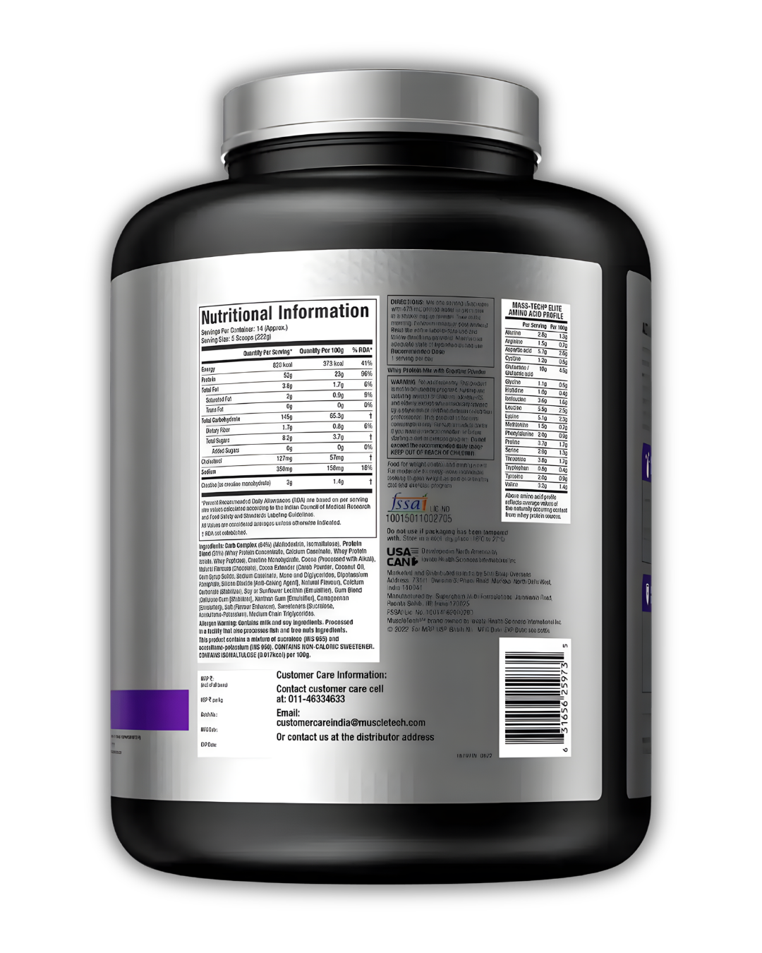 MuscleTech Mass Tech Elite es perfecto para consumir después del entrenamiento, entre comidas o en cualquier momento del día en el que necesites un impulso calórico y proteico. Su delicioso sabor lo convierte en una opción práctica y sabrosa para alcanzar tus objetivos de volumen muscular.