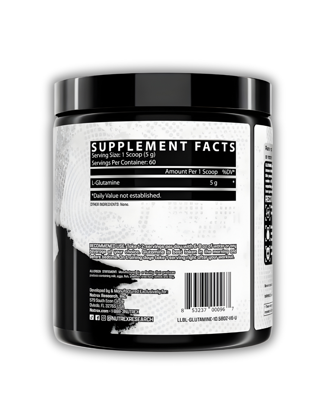 Nutrex Glutamine Pure aporta 5g de L-Glutamina pura para restaurar rápidamente tus reservas, acelerar la reparación muscular y potenciar el crecimiento. Su consumo diario maximiza los resultados de tu entrenamiento, ayudando a construir fuerza y volumen de forma más eficiente.